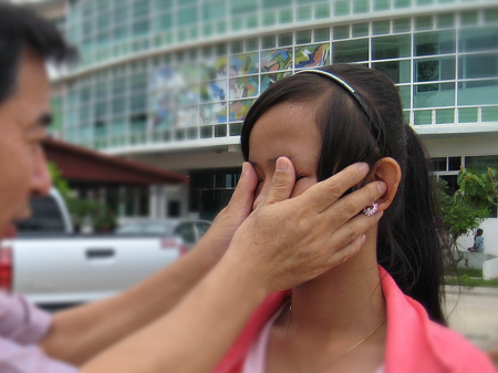 ខ្ញុំឈ្មោះ សាក់ ម៉េងគៀង ដែលរស់នៅក្នុងភូមិទួលសាលា ឃុំស្អាងភ្នំ ស្រុកស្អាង ខេត្តកណ្តាល ។ កាលពីខ្ញុំមានអាយុ៨ឆ្នាំ ខ្ញុំមានជំងឺភ្នែក នៅពេលនោះភ្នែករបស់ខ្ញុំ មានការស្រវាំង និង ចុកផ្សា ក្នុងគ្រាប់ភ្នែកខ្លាំងណាស់ នៅពេលដែលម្តាយរបស់ខ្ញុំ បាននាំខ្ញុំទៅឲ្យពេទ្យពិនិត្យ គ្រូពេទ្យបាននិយាយថា ភ្នែករបស់ខ្ញុំរលៀកកែវភ្នែក ហើយគ្រូពេទ្យនោះ ក៏បានឲ្យថ្នាំដាក់ភ្នែកមកខ្ញុំ តែមិនបានជាសះស្បើយទេ គ្រាន់តែបាត់មួយរយៈពេល ប៉ុណ្ណោះ បន្ទាប់មកម្តាយរបស់ខ្ញុំ ក៏នាំទៅមន្ទីពេទ្យផ្សេងទៀត៣កន្លែង ព្រមទាំងកាត់វ៉ែនតាអោយខ្ញុំទៀតផង នៅតែមិនបានជាសះស្បើយសោះ ក្រោយមកទៀត ដល់ខ្ញុំមានអាយុ១២ឆ្នាំ ខ្ញុំក៏ឈប់រៀន   នៅថ្នាក់ទី៧ ដើម្បីធ្វើការងាររោងចក្រយកលុយមកជួយដល់គ្រួសាររបស់ខ្ញុំ ពីព្រោះម្តាយរបស់ខ្ញុំ បានជំពាក់ប្រាក់គេជាច្រើន ដោយសារព្យាបាលជំងឺដល់ខ្ញុំ និង ប្អូនប្រុសរបស់ខ្ញុំដែលវះកាត់ជើង លើកដំបូងដែលខ្ញុំទៅព្រះវិហារ គឺ ពេលខ្ញុំអាយុ១៣ឆ្នាំ ខ្ញុំបានស្គាល់ព្រះយេស៊ូវគ្រីស្ទតាមរយៈលោកយាយរបស់ខ្ញុំ ហើយពេលនោះខ្ញុំ បានជួបគ្រូគង្វាលដែលជាបេសកជនកូរ៉េ គាត់បានអធិស្ឋាន សម្រាប់ខ្ញុំ និង នាំខ្ញុំទៅព្យាបាលភ្នែក នៅមន្ទីរពេទ្យហេប្រុន ដែលជាមន្ទីរពេទ្យគ្រីស្ទាន ហើយគ្រូពេទ្យនោះ បាននិយាយថា ភ្នែករបស់ខ្ញុំគ្រាន់តែស្ងួតខ្វះទឹកភ្នែក ប៉ុណ្ណោះ ទើបបានជាភ្នែកខ្ញុំមានពណ៌ប្រផេះ តាំងពីពេលនោះ មកខ្ញុំក៏មានសេចក្តីជំនឿកាន់តែខ្លាំងឡើង  ពីព្រោះ ខ្ញុំបានដឹងថា ព្រះជាម្ចាស់ព្យាបាលភ្នែករបស់ខ្ញុំអោយបានជា និង គ្មានបញ្ហាដូចពីមុនទៀតឡើយ ហើយមកដល់ ពេលនេះខ្ញុំមានអាយុ១៨ឆ្នាំ ហើយតែគ្មានជំងឺភ្នែកទៀតឡើយ គឺ ដោយសារបេសកជនបានអធិស្ឋានសម្រាប់ខ្ញុំ ព្រះជាម្ចាស់បានព្យាបាលខ្ញុំអោយបានជា ម្យ៉ាងទៀត បេសកជនបានជួយអោយខ្ញុំ ចូលរៀនជំនាញកាត់សក់ ព្រមទាំងបើកហាងកាត់សក់អោយខ្ញុំ ដើម្បីធ្វើការ បណ្ដើរផ្សាយដំណឹងល្អ អំពី ព្រះយេស៊ូវដែល ខ្ញុំបានជួប នៅហាងកាត់សក់ក្នុងទីក្រុងភ្នំពេញ ដូច្នេះ ខ្ញុំក៏មានសុភមង្គល ហើយសូមអរព្រះគុណដែល ព្រះជាម្ចាស់ប្រទានពរសម្រាប់ខ្ញុំ ខ្ញុំស្រលាញ់ព្រះយេស៊ូវគ្រីស្ទ។